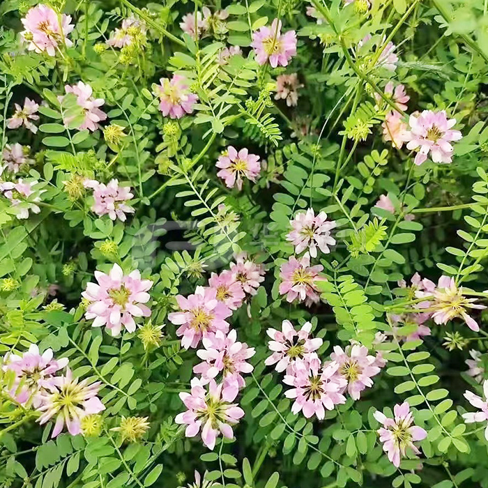 小冠花屬于多年生草本植物,豆科小冠花屬。根系粗壯發(fā)達(dá),密生根瘤,其根上的不定芽再生能力強(qiáng),能使根系向水平方向蔓延。莖中空,有棱,質(zhì)地柔軟匍匐向上伸,*長可達(dá)180cm,分枝能力強(qiáng);節(jié)上葉芽易萌發(fā)形成很多側(cè)枝。奇數(shù)羽狀復(fù)葉,互生。喜溫暖濕潤氣候,但因其根蘗芽潛伏于地表下20cm左右處,故抗寒越冬能力較強(qiáng)。