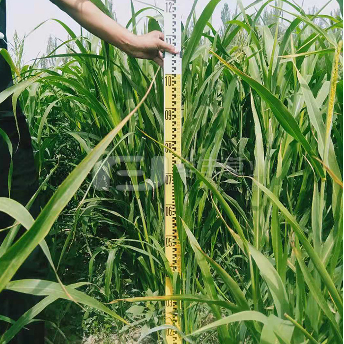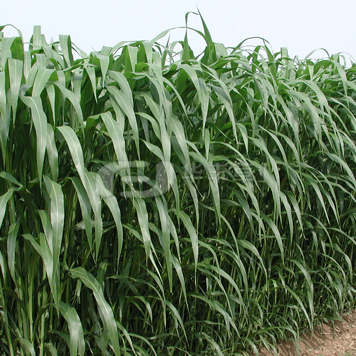 “標(biāo)兵”是一年生禾本科牧草,根系發(fā)達(dá),株高可達(dá)2~3m,莖稈非常纖細(xì),葉片寬大,葉量豐富,草質(zhì)柔軟,適口性好,飼喂價(jià)值高?!皹?biāo)兵”結(jié)合了父母本的優(yōu)點(diǎn),莖稈含糖量高,再生和分蘗能力強(qiáng),分枝多,鮮草氫氰酸含量很低,飼喂鮮草非常安全。