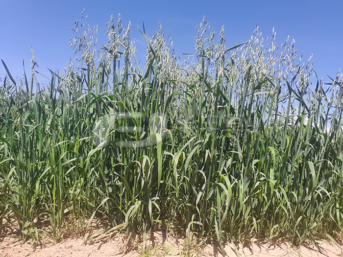 加拿大引進的晚熟型專用飼用燕麥品種。全生育期110-120天,種子凈度≥98.0%,芽率≥90%,水分≤10.0%。須根發(fā)達,植株分蘗能力強,莖稈直立,莖粗0.36-0.6cm,株高120-150cm左右。葉量豐富,葉長25-40cm,葉寬1.6-2.8cm。莖葉柔嫩多汁,含糖量高,適口性非常好。干草中粗蛋白含量高,消化率高,營養(yǎng)價值豐富,草味甘甜。在良好的田間管理條件下,水澆地干草產(chǎn)量可達900kg/畝,旱地產(chǎn)量600kg/畝。在我國一年可種植兩季燕麥的地區(qū),全年的干草產(chǎn)量可達1200kg/畝。