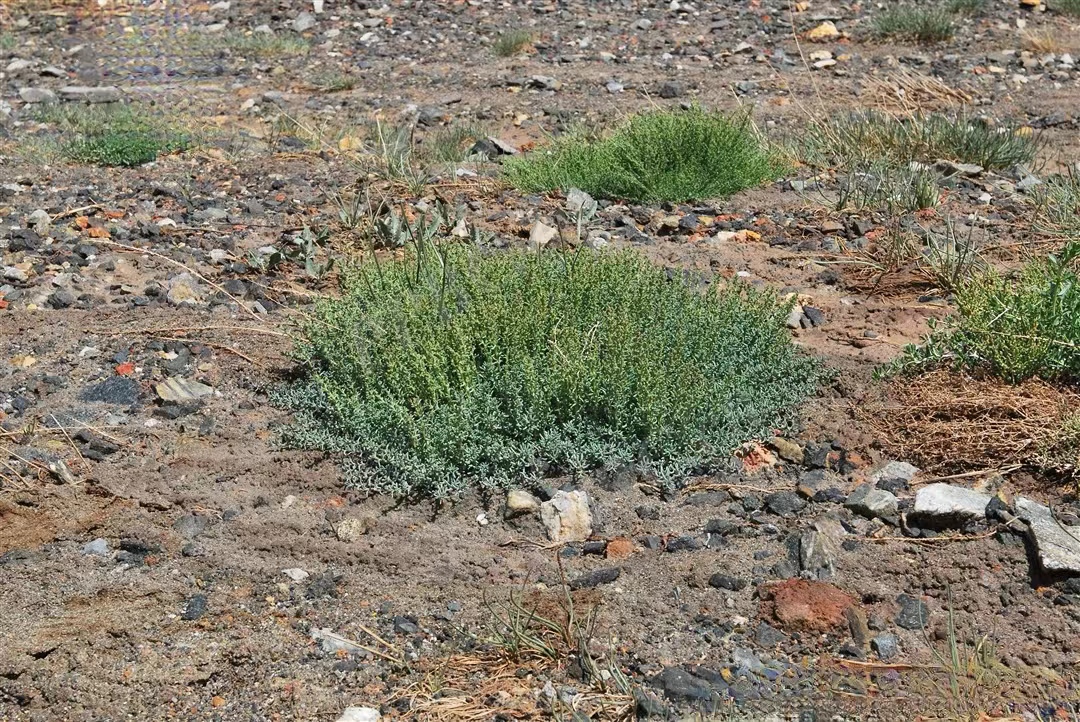 鹽爪爪(Kalidium foliatum (Pall.) Moq.)是藜科鹽爪爪屬小灌木,高可達(dá)50厘米。莖直立或平臥,多分枝;小枝黃綠色。葉片圓柱狀,灰綠色,頂端鈍,基部下延,半抱莖。花序穗狀,無柄,花生于鱗狀苞片內(nèi);花被合生,上部扁平成盾狀,盾片寬五角形,周圍有狹窄的翅狀邊緣;種子直立,近圓形,7-9月開花結(jié)果。